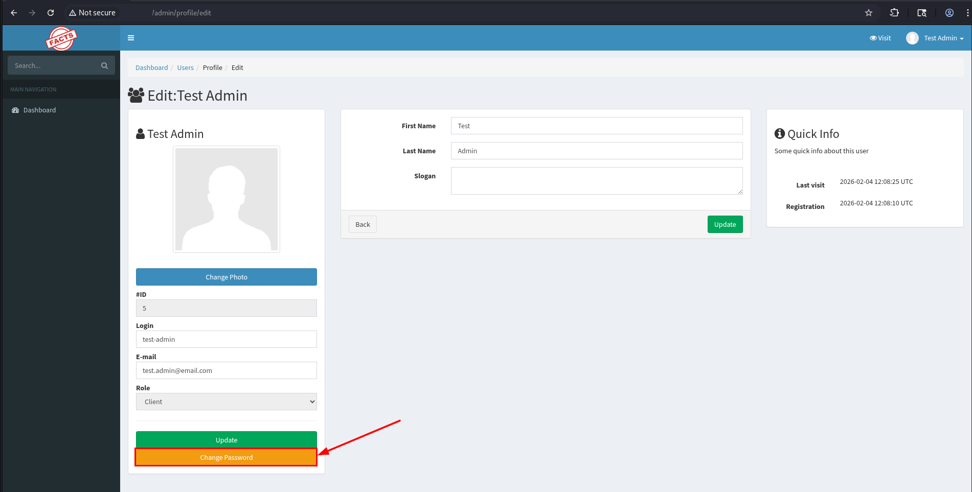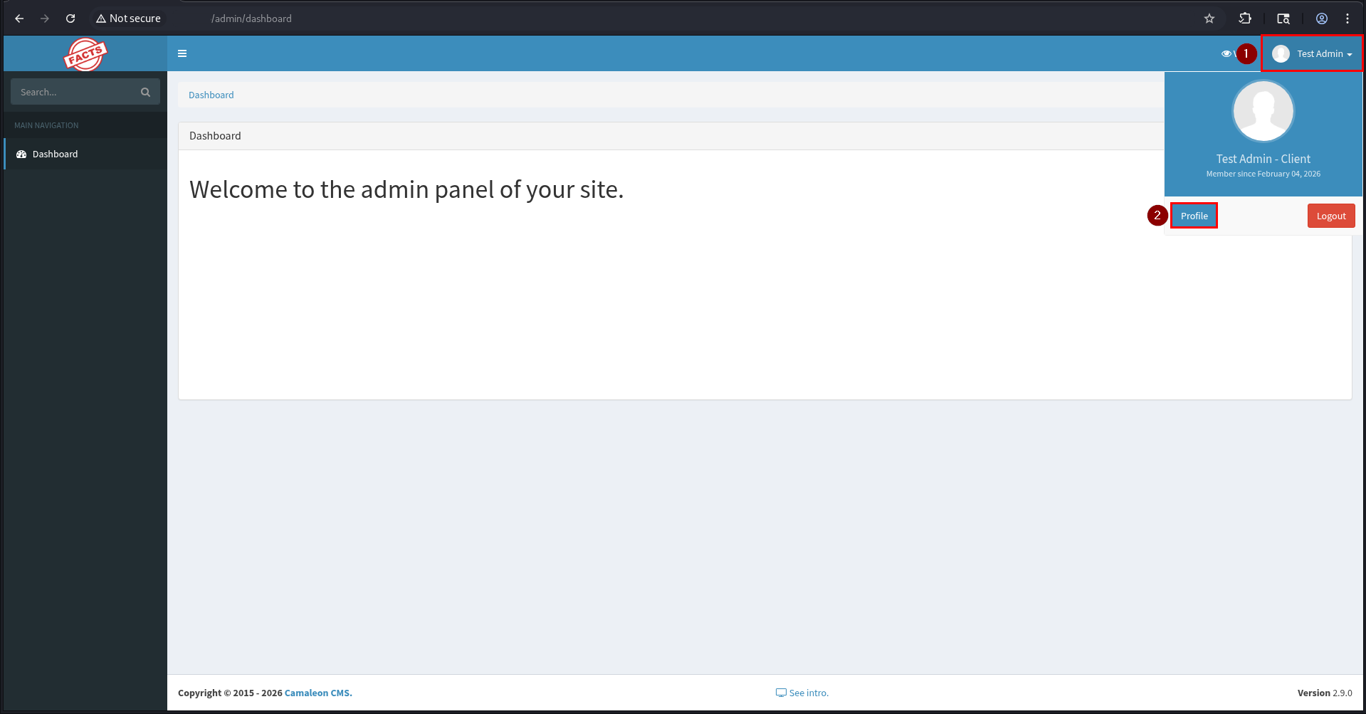 /admin/loginendpoint. - Go to the user profile or access the endpoint