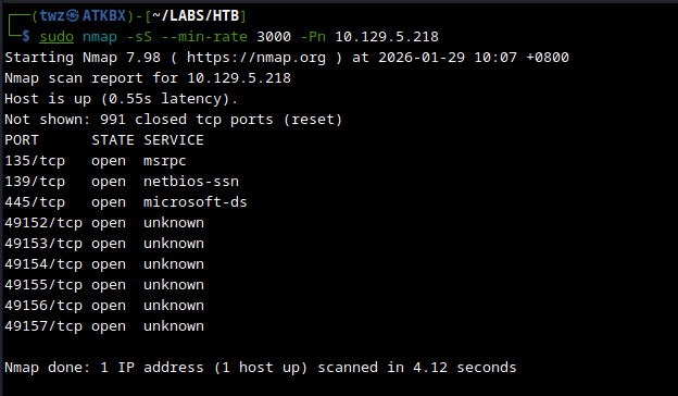 sudo nmap -sS --min-rate 3000 -Pn 10.129.5.218